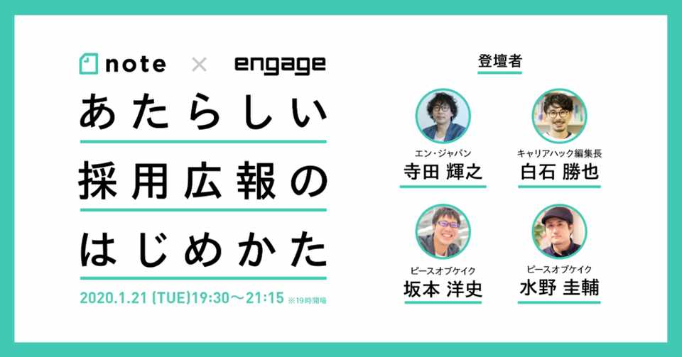 あたらしい採用広報 のはじめかた 開催のお知らせ 1月21日19時半 Note Engage 共催イベント Note株式会社