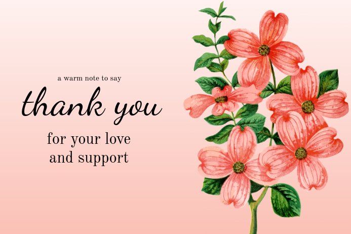 Thank you for all the support you have given me. Personalize it with photos & text or purchase as is!. Bereavement thank you notes for all occasions, plus beautiful cards to buy.